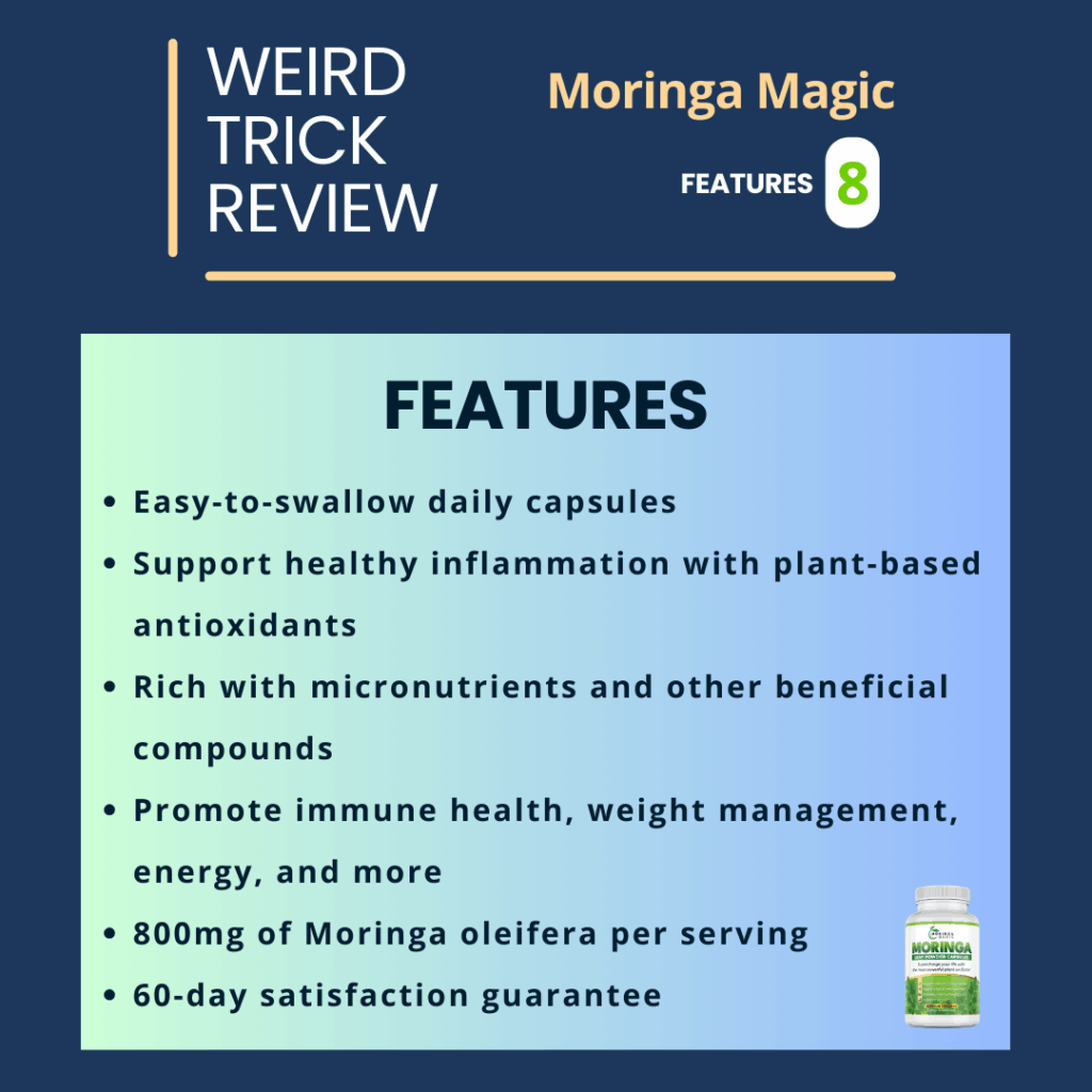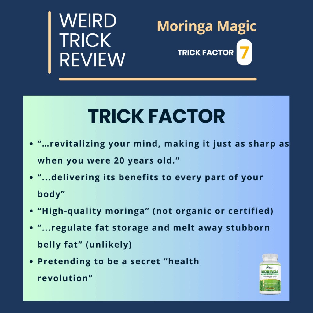 The makers of Moringa Magic avoid making too many bizarre claims about the plant extract. However, some of the weird tricks seen on the official website include: