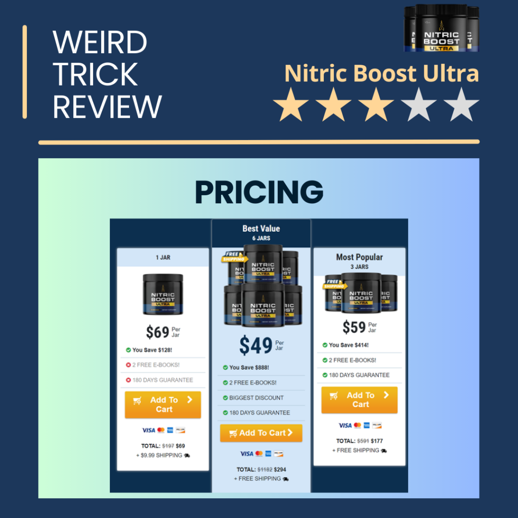 Nitric Boost Ultra gets a 3/5 score for pricing. You can find the individual ingredients at a cheaper price online – and in stronger dosages and quanities.